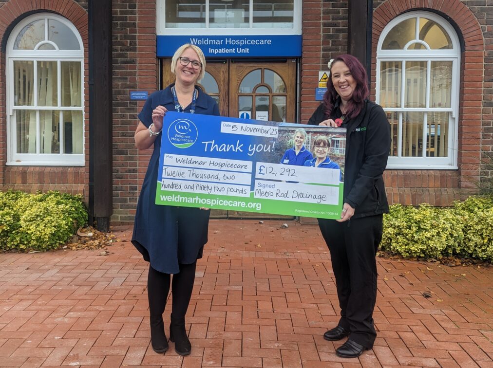“We’re enormously grateful to Metro Rod and Metro Plumb for selecting Weldmar Hospicecare for this fundraising support. The donation will make a real difference in enabling us to continue providing specialist, compassionate care for local adults with a life-limiting illness, and support for their loved ones at the most difficult of times.”