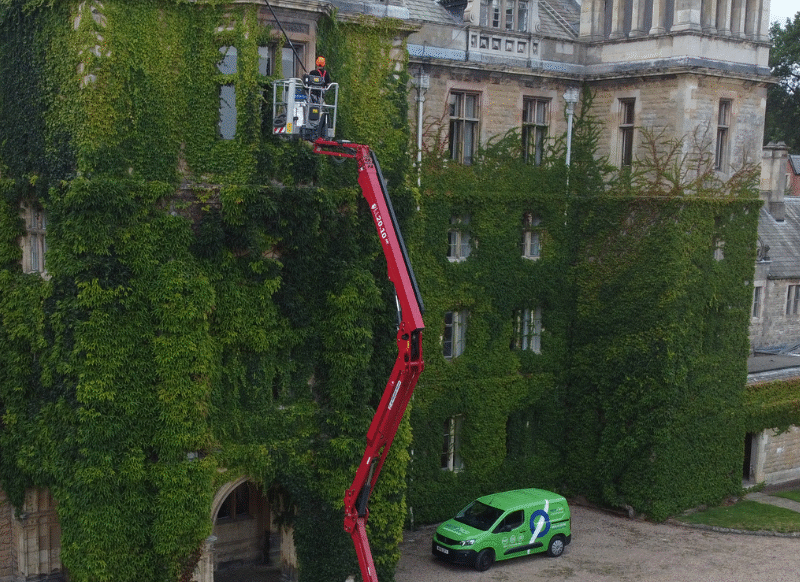 Using a tracked MEWP, our skilled operators accessed the roofs and gutter pipework safely. Debris, moss, and foliage were carefully removed, preventing further water blockage. Any minor repairs identified during the cleaning were carried out on-site following approval from the maintenance team. We also used aerial footage to inspect critical areas, including the top of the chimney breast on the south side, identifying repair needs that may otherwise have gone unnoticed.