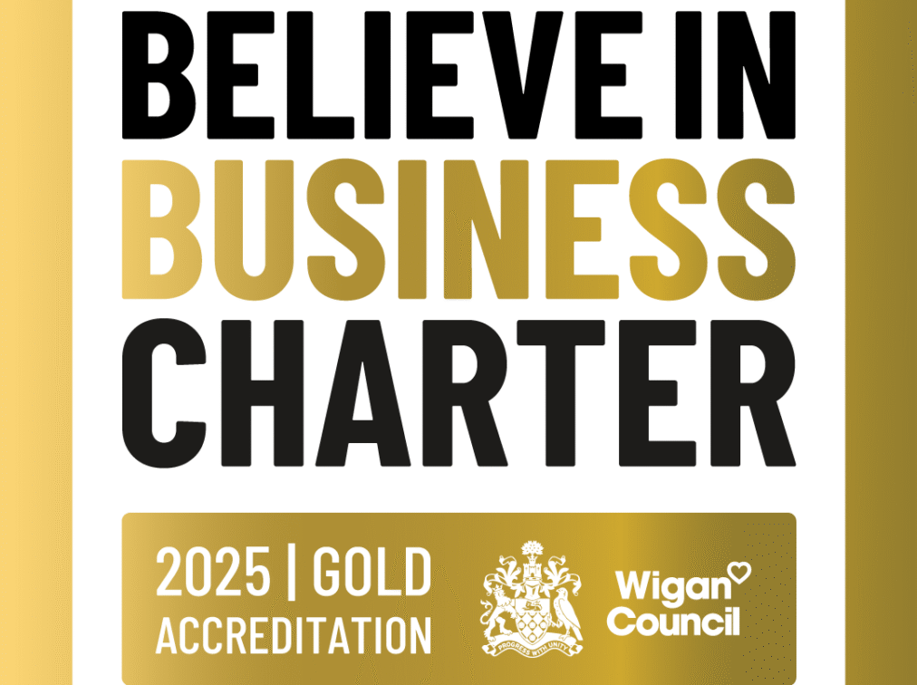 Our Director Jo said “We were delighted with being awarded gold in the believe in business charter. This is a true testament to the ongoing commitment we make in our community from working alongside various amazing local charities to sponsoring local youth sporting teams and to using local suppliers and employing local people. We are really excited to see what doors this opens for us in the Wigan and Leigh borough.”