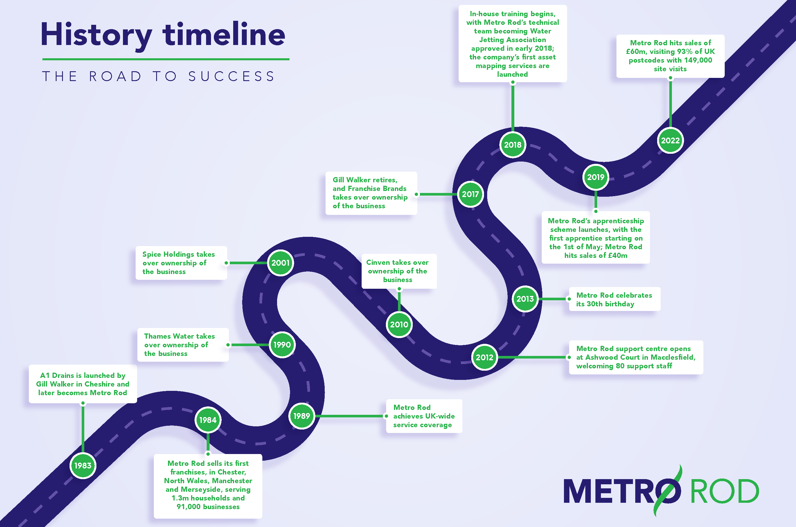 Metro Rod was founded in 1983 in Macclesfield, Cheshire, and has subsequently grown to become a leading provider of drains clearance and maintenance services on a national basis, operating 24/7/365. In 2016 Metro Rod expanded its range of services with the launch of Metro Plumb, which originally primarily served the emergency insurance market, and now offers emergency and routine plumbing solutions to domestic and commercial customers across the UK.